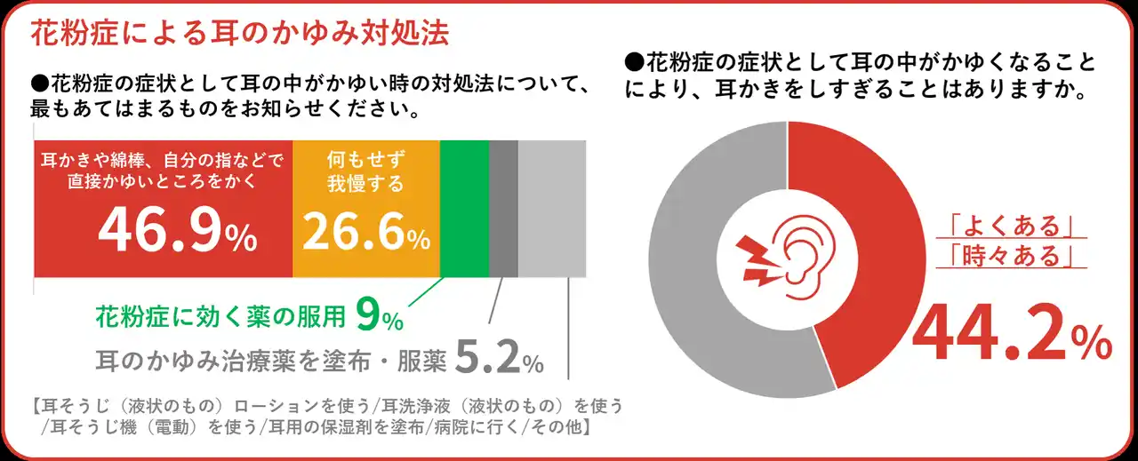 【5】“花粉耳”の対処法として約半数が「耳かきや綿棒、指などで直接かく」と回答。 |