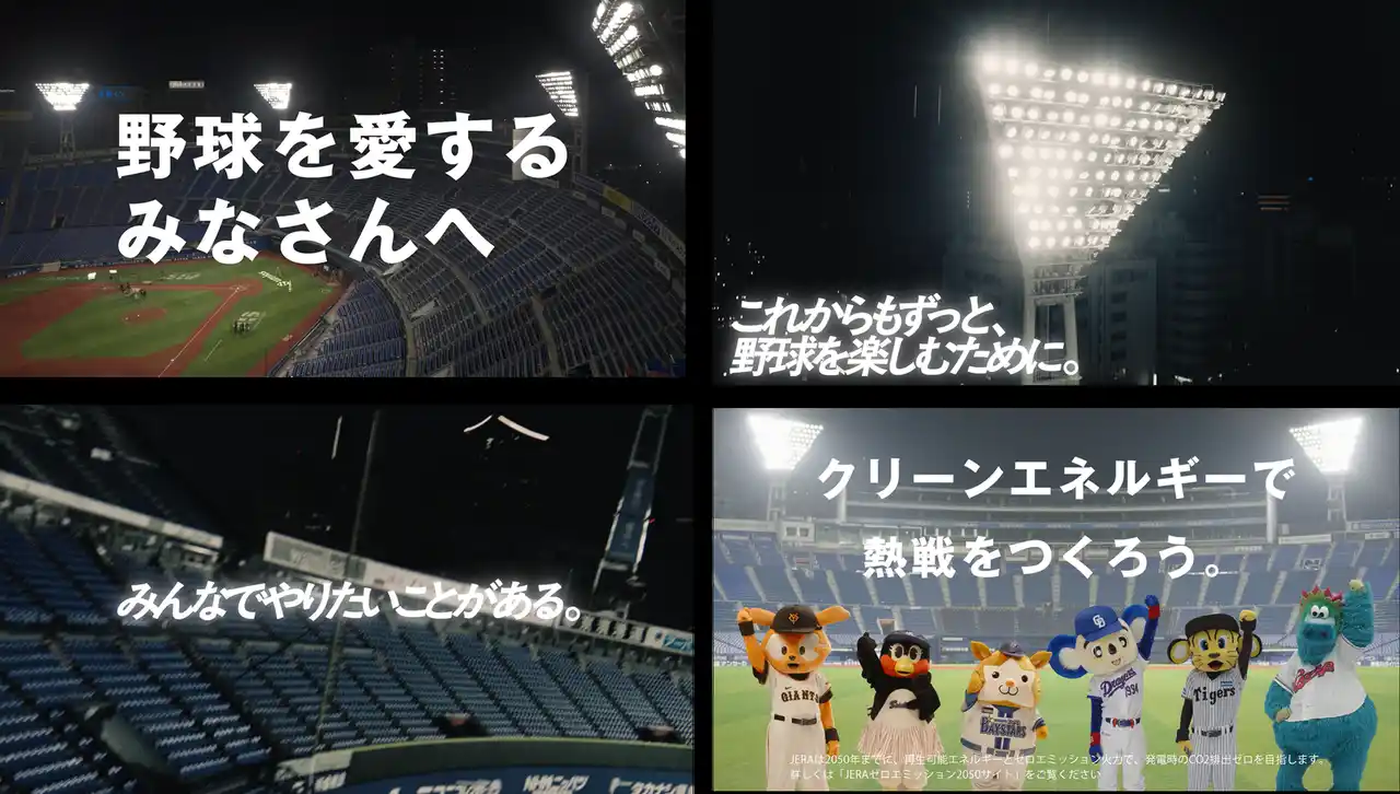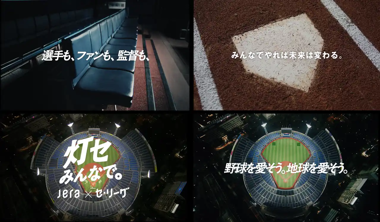 本プロジェクトでは、セ・リーグ各球団で進めている既存の取り組みに限らず、年間来場者数のべ1,472万人のファン(2025年シーズン:セ・リーグ発表数)の皆さまとともに、持続可能でより良い社会の実現に向けた取り組みを進めていきたいと考えています。「灯セ、みんなで。」のコミュニケーションは、特に野球ファンの皆さまに向け、「灯セ、みんなで。マスコット」編、「灯セ、みんなで。球場」編の2本を制作し、セントラル・リーグの開幕戦中継時にCMでお届けする他、セントラル・リーグのマスコットが勢ぞろいするビジュアル広告も、新聞、デジタルで展開いたします。また、特設サイトにおいてもニュースを更新していきます。 |