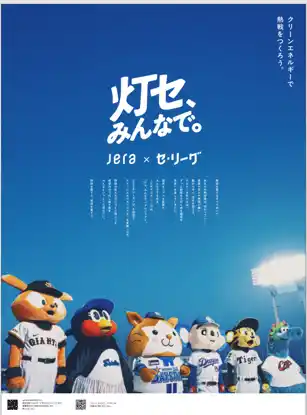 「灯そう。みんなで。」キャンペーンの連動企画として、本年3月9日にセントラル・リーグと共同で公表しました、JERA×セ・リーグ「灯セ、みんなで。」プロジェクトがあります。本プロジェクトは、JERAとセ・リーグ6球団で、ファンの皆さまとともに、「持続可能な明日への力強い希望の光を灯していきたい」という想いを込めて「灯セ、みんなで。」プロジェクトと名付け、発足しました。 |