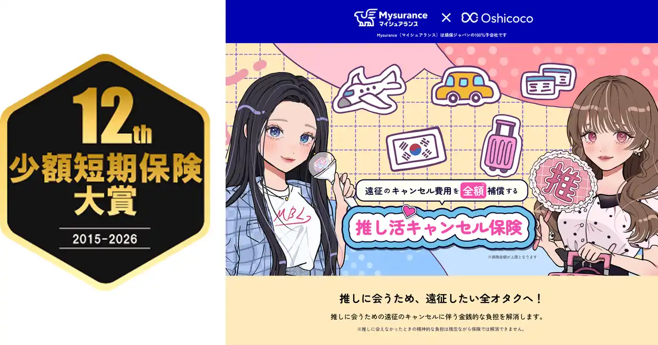 第12回少額短期保険大賞 Mysurance株式会社「推し活キャンセル保険に決定!」(2026年3月13日) |