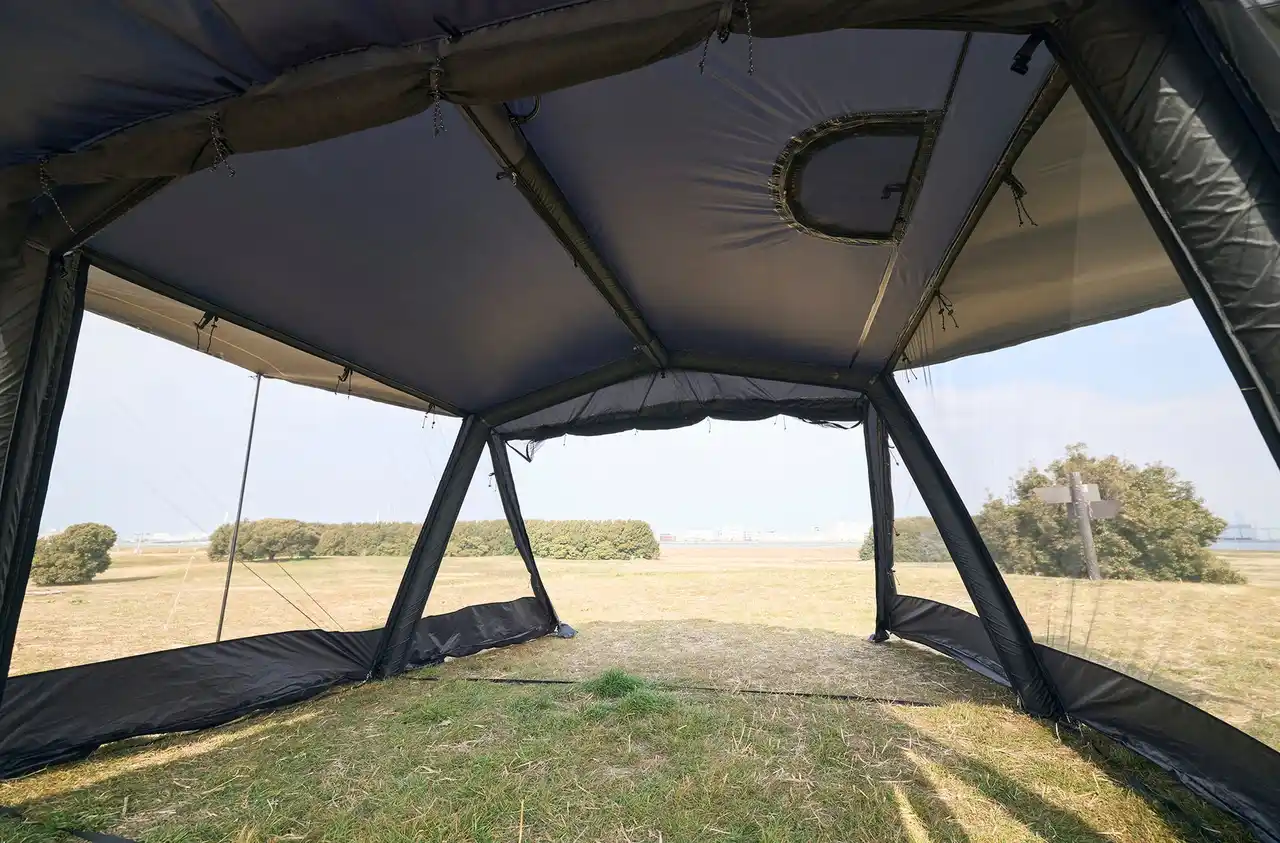 テント全面はメッシュ~フルオープンまで可能です。 |