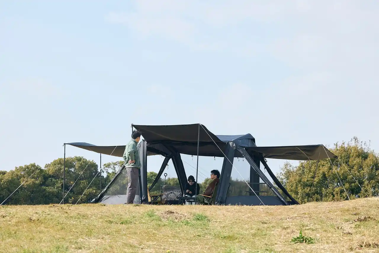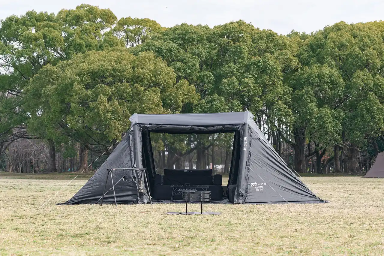 大型テントの心地よさはそのままに、設営の負担を軽減したエアテント"AIR VISTA"を4月下旬に販売いたします。
