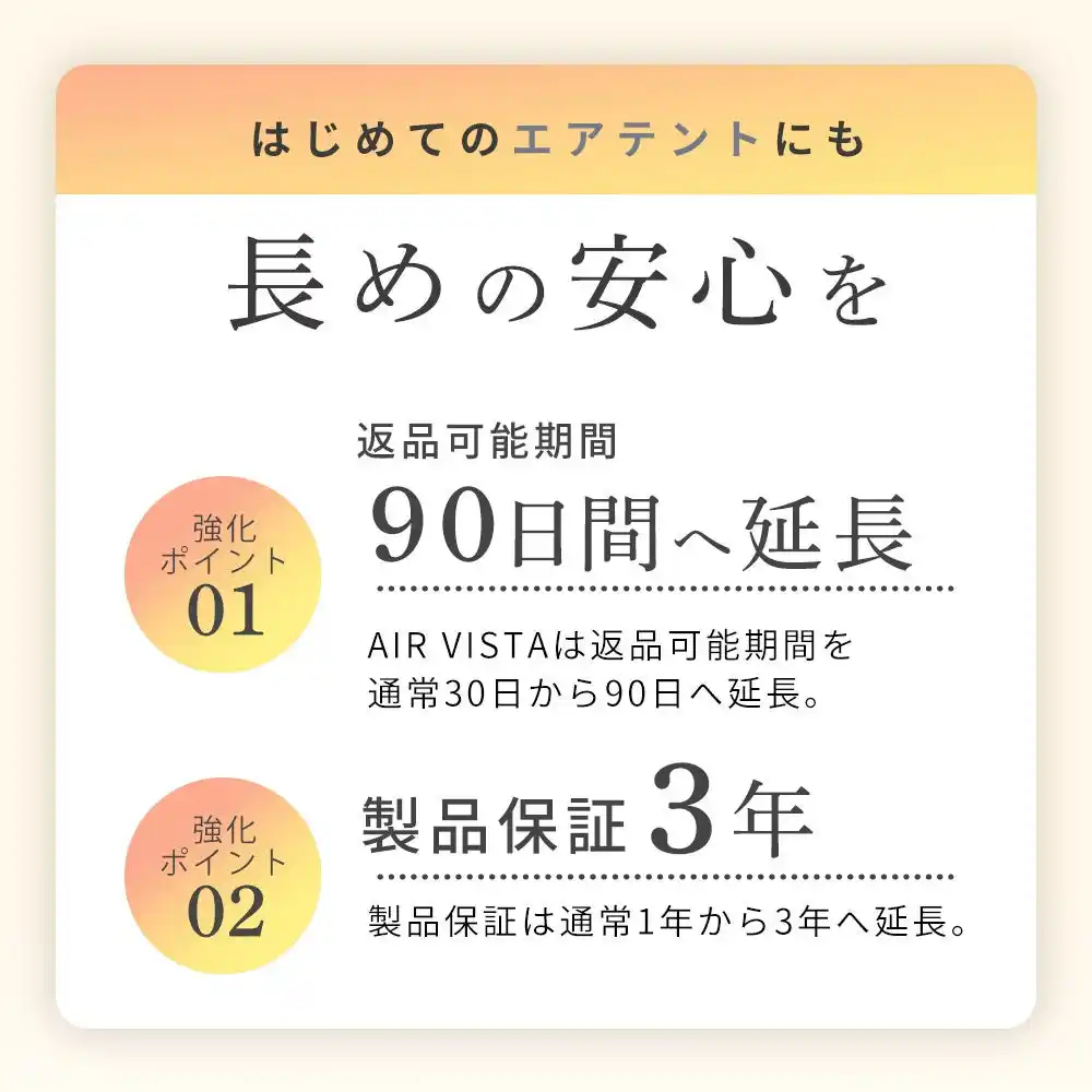 【point 4】エアテント限定!アフターフォローを強化。 |