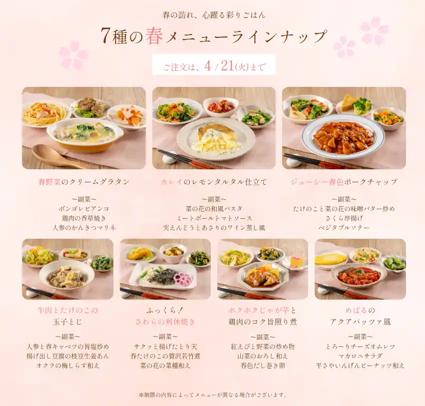 こうしたお客様の声にお応えする形で、今回初めてとなる「春限定メニュー」を開発。 旬の食材や春らしい彩りを取り入れながら、生活習慣病の方でも安心して楽しめる栄養設計に仕上げています。 |