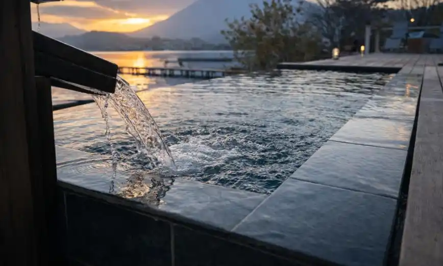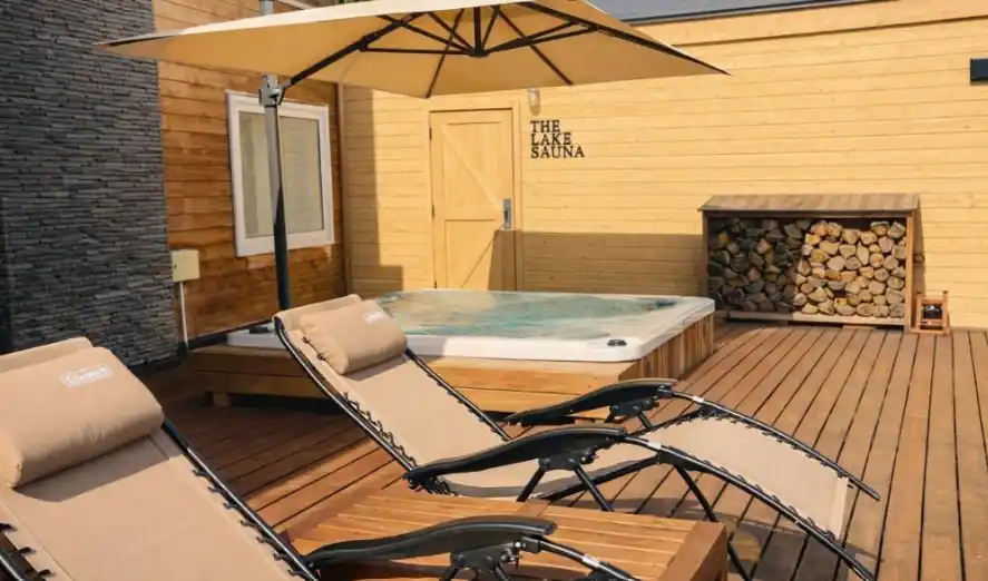 湖畔を眺めながらはいる本格ジャグジーや天然地下水掛け流し冷たい水風呂を体験可能です。周りにはほぼ何もない、目の前に広がる湖の絶景朝焼けに染まる静かな湖面、日中のきらめく水面、夕暮れに溶ける山影、そして夜の深い静寂と満天の星空まで...。時刻と季節ごとに表情を変える野尻湖の絶景を、特等席で優雅にお楽しみいただけます。 |