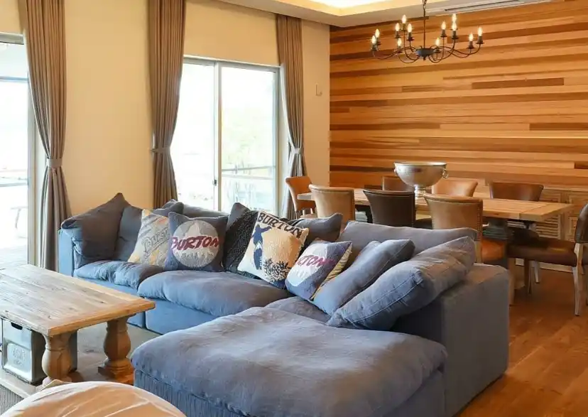 柔らかいソファ、ウッドテーブル、ウッドチェアで自然も感じながら心地よく過ごせるようこだわりの家具で統一感を演出しています。 |