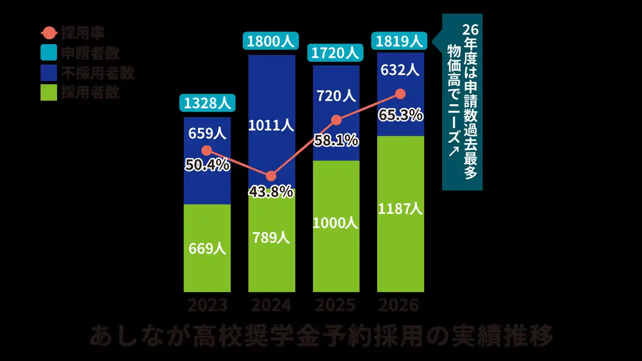 あしなが高校奨学金予約採用の採用実績(2023~2026年度) |