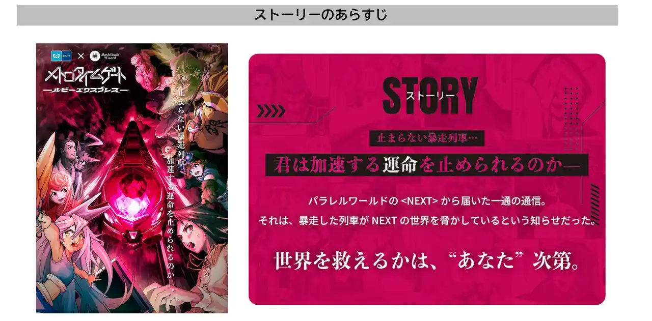 東京地下鉄株式会社(本社:東京都台東区、代表取締役社長:小坂 彰洋、以下「東京メトロ」)は、地域コンテンツを軸にした体験型サービス「街ハック!」を展開する株式会社休日ハック(本社:東京都台東区、代表取締役社長:田中 和貴、以下「休日ハック」)と共同で、没入型体験ゲーム『メトロタイムゲート』の完全新作となる「ルビーエクスプレス」編を、2026年4月3日(金)から同年9月30日(水)の間、期間限定で開催します。