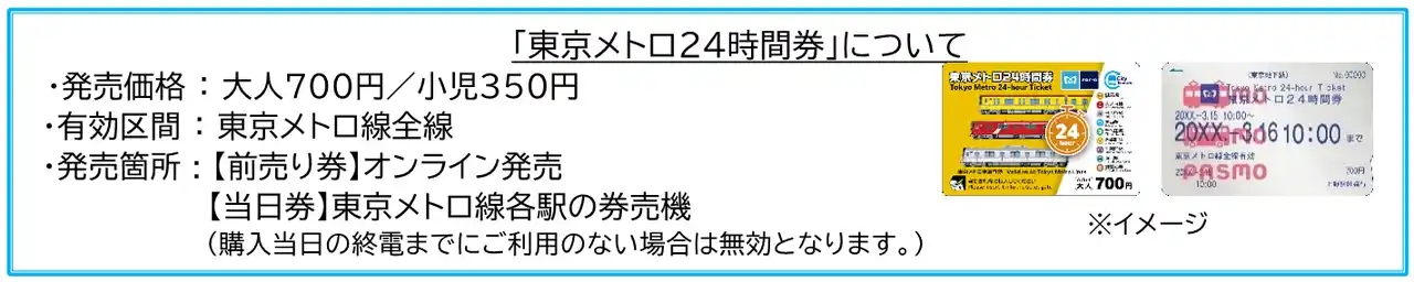 ※東京メトロ24時間券は付属いたしません。「メトロタイムゲート」へのご参加には、便利な「東京メトロ24時間券」がオススメです。 |