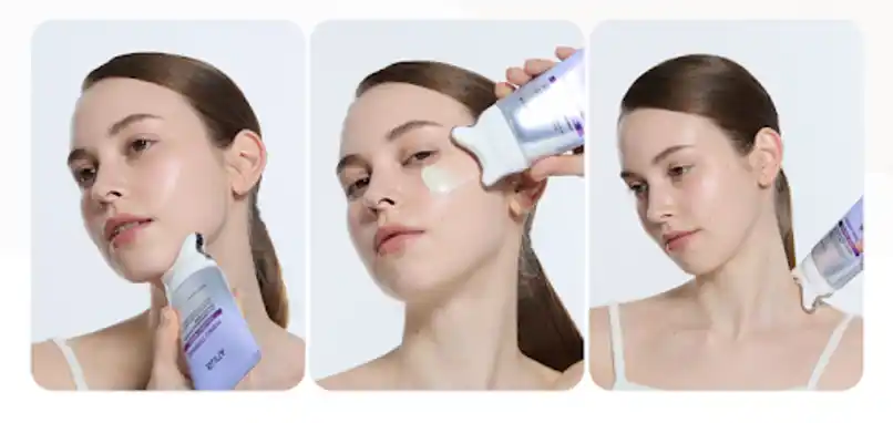 2.フェイスライン・首・デコルテなど気になる部位に塗布します。 |