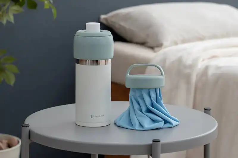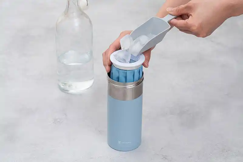 氷のうを真空ステンレスボトルにセットして、 保冷状態で携帯できる冷感アイテム。 |