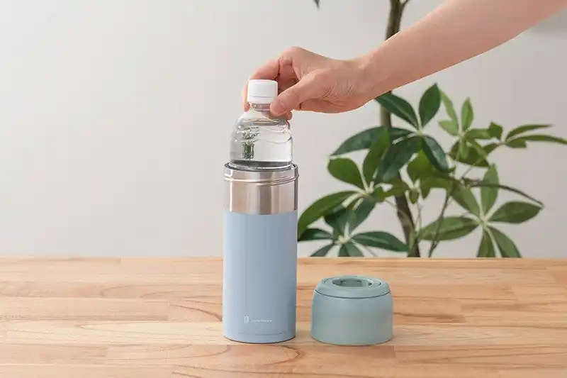 ペットボトルをセットすると簡易的な水筒に。 |