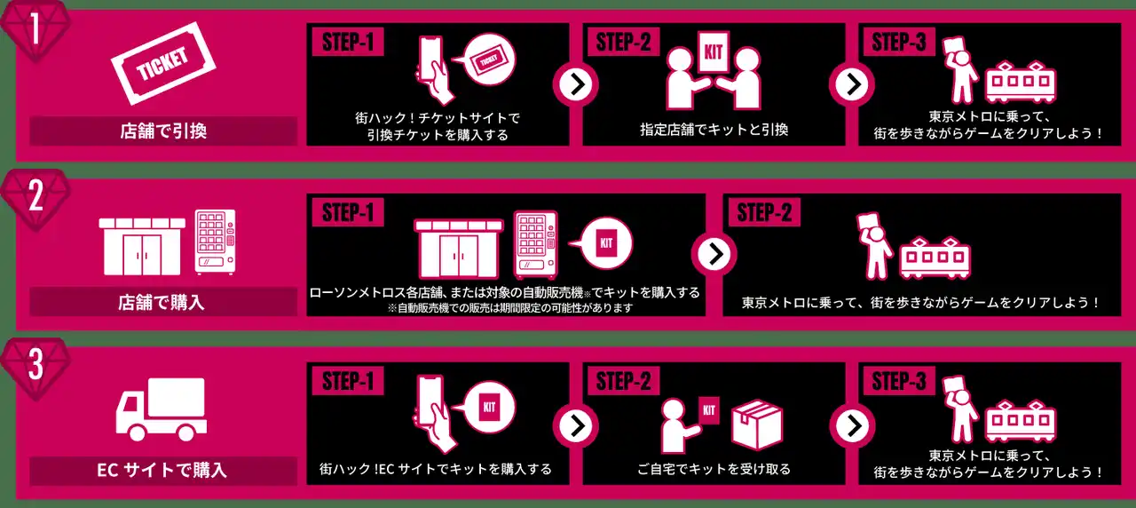 | 参加者は体験キット(※東京メトロ24時間券は付属しません)を購入後、専用サイトにニックネームを登録。描き下ろしキャラクターとともに、東京メトロ沿線の各所を巡りながら出題されるミッションに挑戦します。街での行動と物語が連動し、“あなた”が主人公となるストーリーが展開します。 | |||||||||||||||
