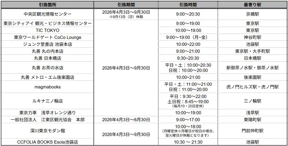 | ※引換箇所や営業時間は変更となる場合がございます。 | |||||||||||||||