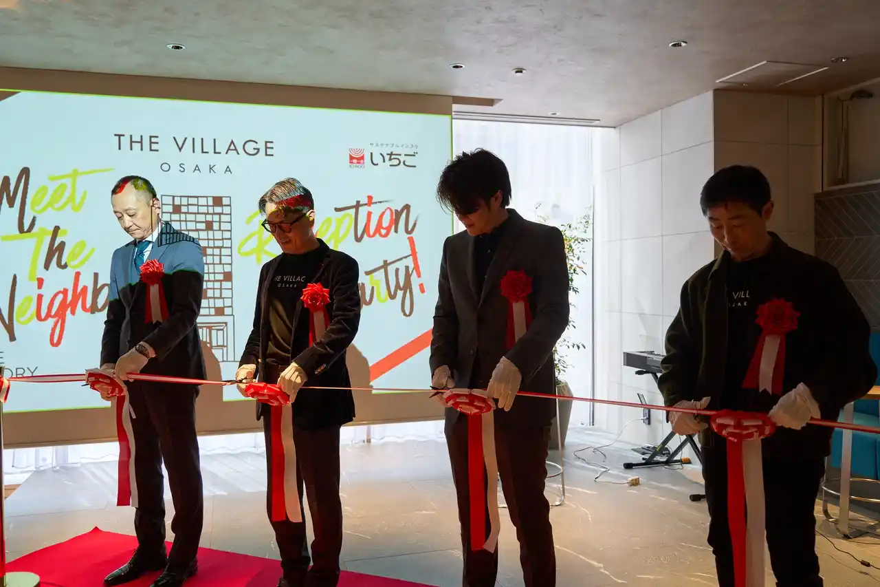 本拠点は、いちご地所株式会社が運営する一棟全室セットアップオフィス「THE VILLAGE OSAKA」の10階に位置します。単なるオフィス開設に留まらず、当社は施設全体の共用イベントスペースの企画・運営を担うパートナーとして参画。2026年3月6日には、その始動を象徴するオープニングレセプション「Meet The Neighbors!」を開催し、産官学から300名を超える人々が集いました。万博という一過性の熱狂を日常のビジネスへと接続し直す、新たな「実験の場」がいま動き出します。