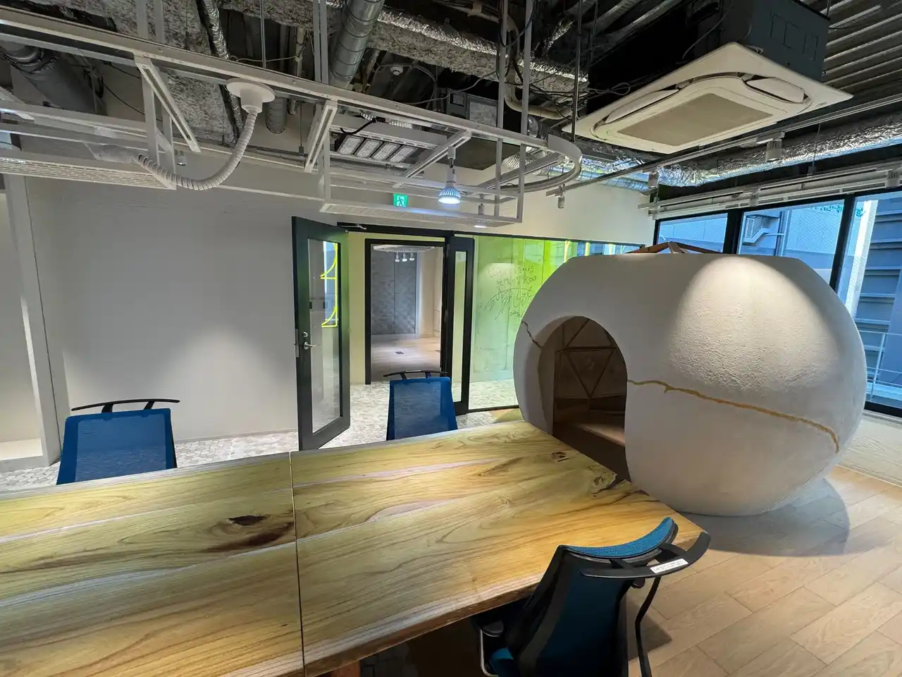 万博パビリオン資材を再利用した10階フロア。 |