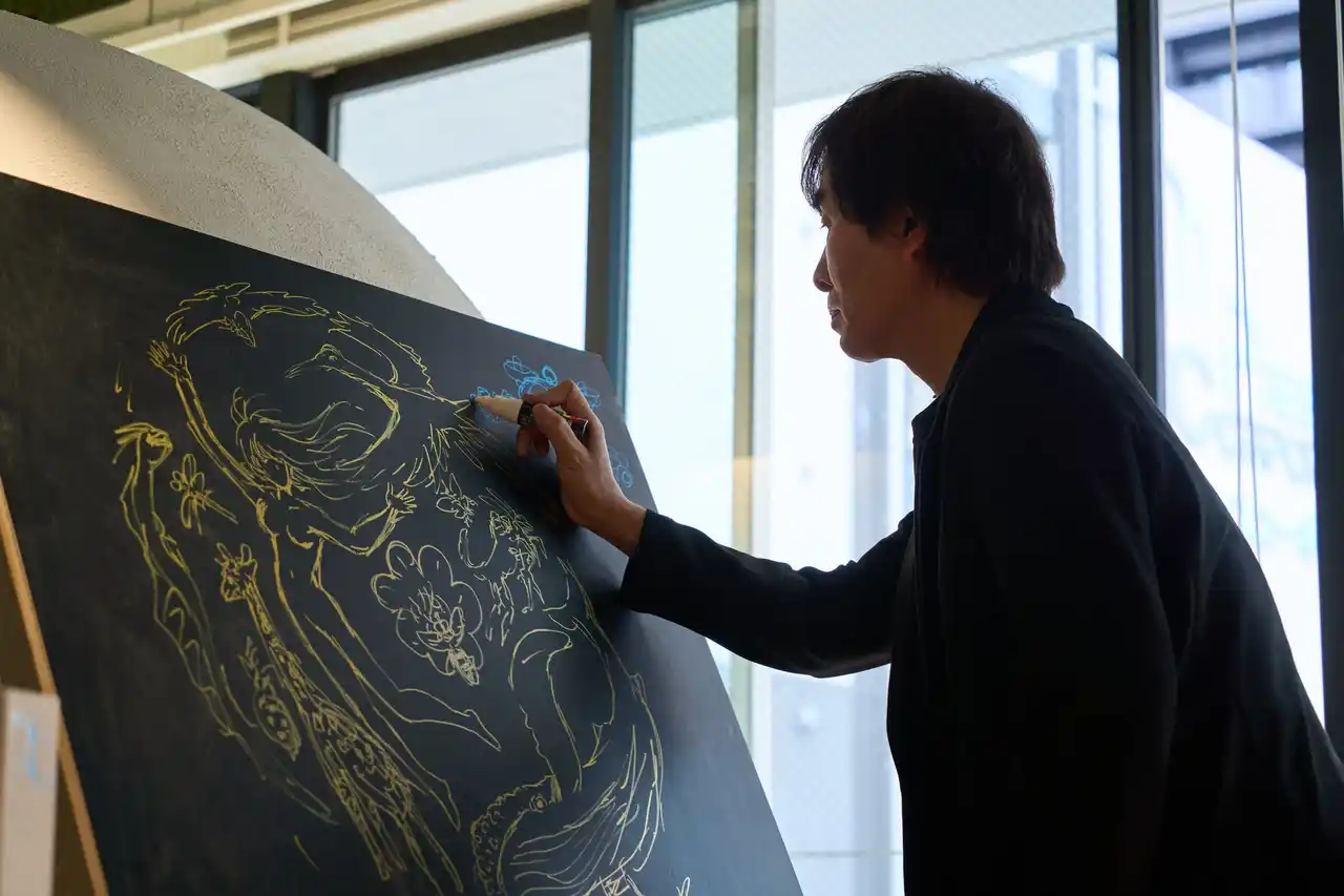 ・河森正治氏によるサインと、生命が吹き込まれたライブペインティング:万博プロデューサー・河森正治氏と当社CSO流郷綾乃による対談を実施。さらに、河森氏が10階フロアにてライブペインティングを敢行しました。描き上げられた作品に自らのサインが刻まれた瞬間、会場は大きな拍手に包まれ、本拠点は新たな創造の拠点としての魂を宿しました。 |