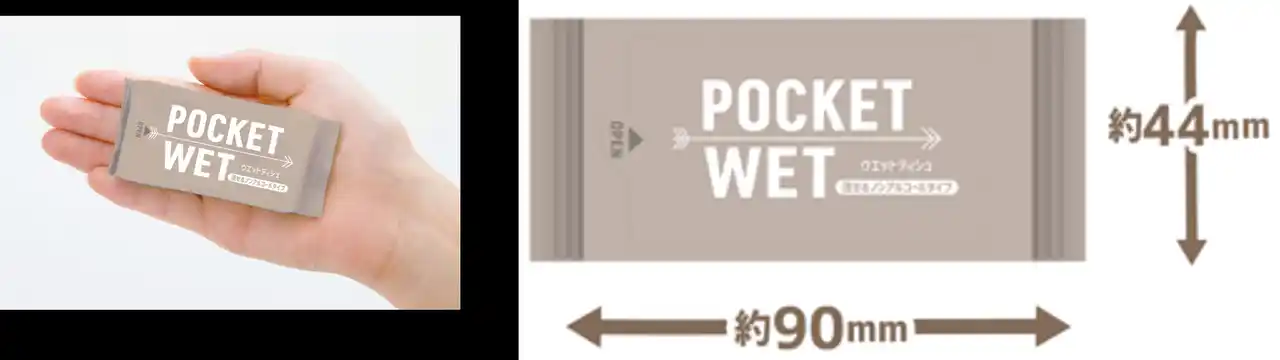 2022年9月に発売となったPOCKET WET。発売当初より、サイズや容量など使い勝手が良いとご好評をいただき、アルコールタイプ、ノンアルコールタイプの2種類を展開しておりましたが、 この度、水に流せるノンアルコールタイプを開発・リリースすることとなりました。 |