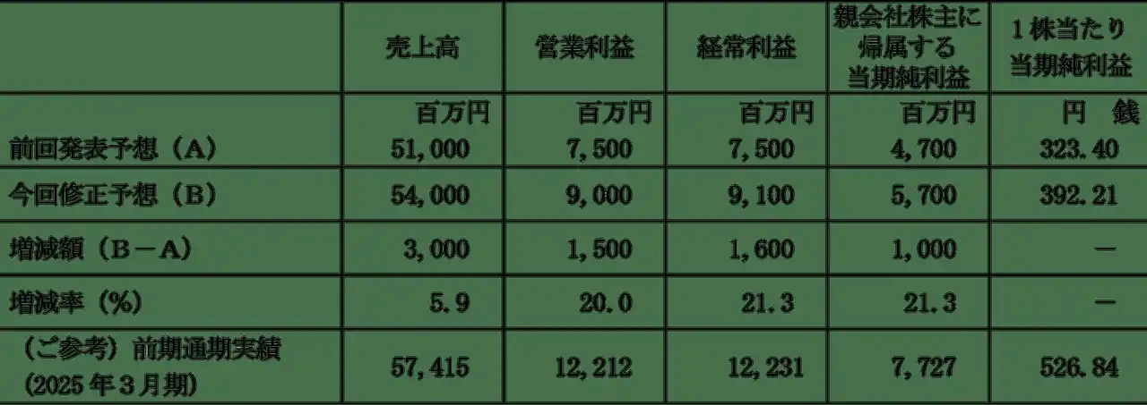 | <2026年3月期連結業績予想数値の修正>(2025年4月1日~2026年3月31日) | |||