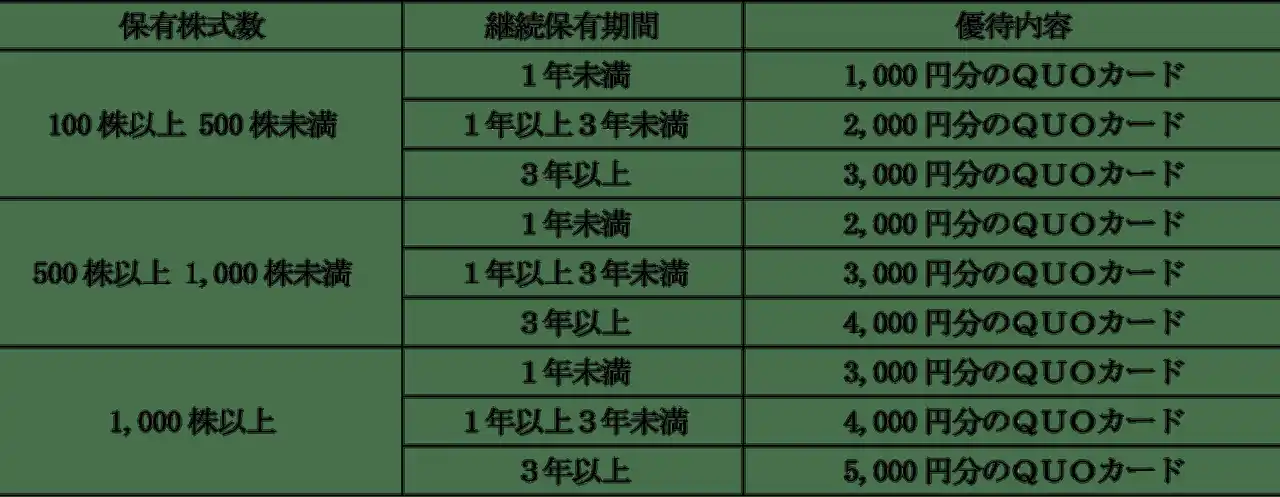 また、より多くの投資家の皆様に当社株式を中長期的に継続して保有いただくことを目的として、優待区分を見直すことといたしました。 |