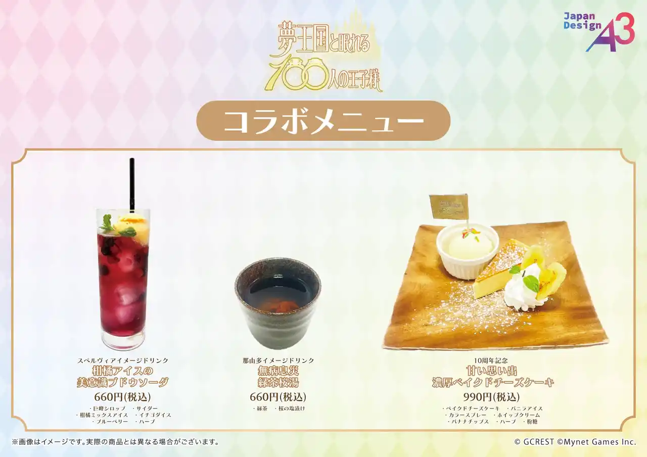 【株式会社A3】 『夢王国と眠れる100人の王子様』コラボカフェが2026年4月25日から開催! 新作グッズのほかファン必見のコラボメニューも!!