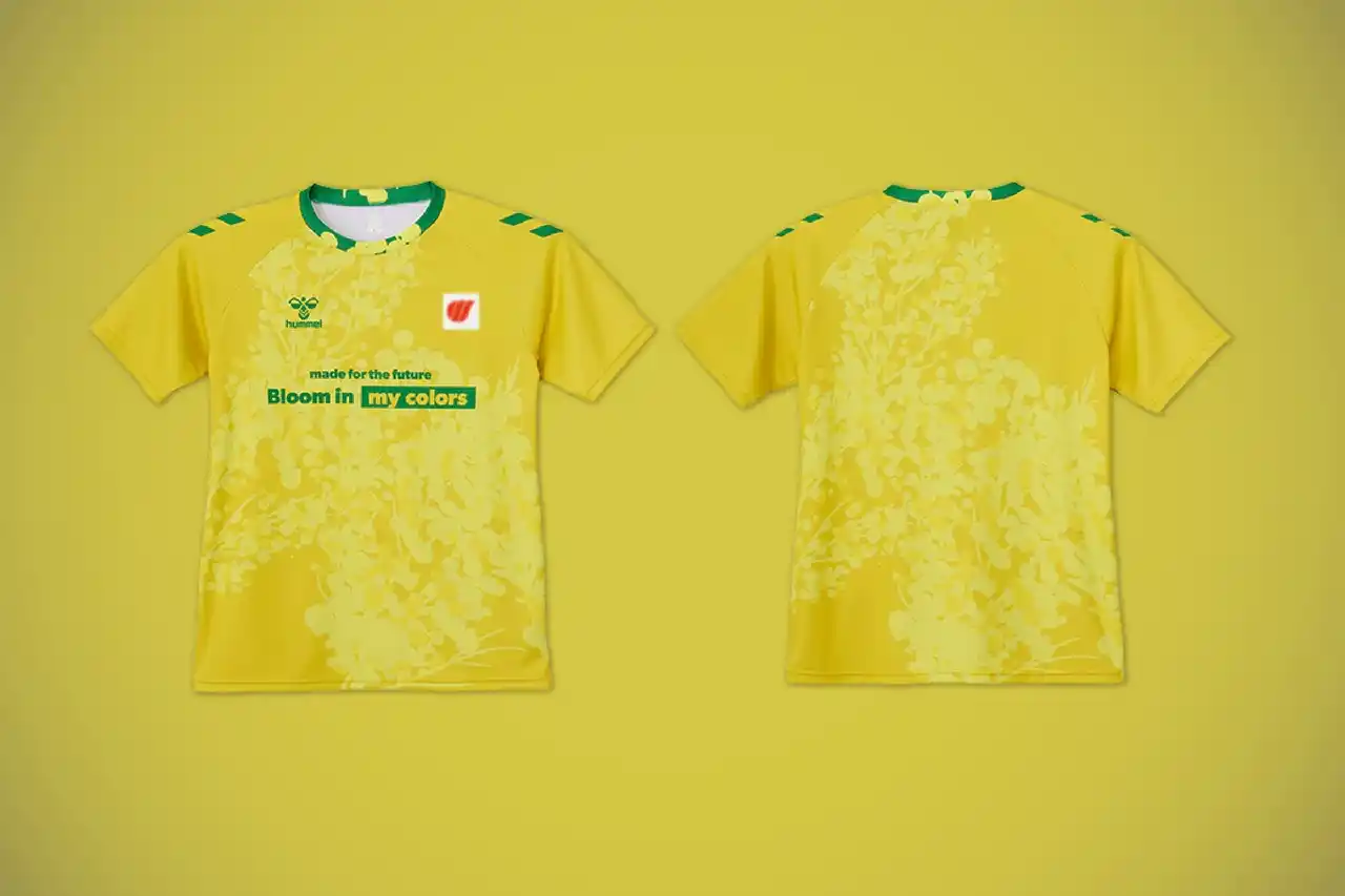 今回、選手たちが着用したシャツは、国際女性デーのシンボルのひとつにもなっているミモザを全面にデザイン。春の訪れを告げる黄色い花が女性の強さややさしさを表し、襟元にミモザの花と黄緑色の葉を重ねることでアクセントに。胸には取り組みのテーマである「Bloom in my colors.」(ワタシ色に咲こう)を配置し、それぞれの個性や多様性を認め合いながら、自分らしく花を咲かせようという想いを込めました。 |