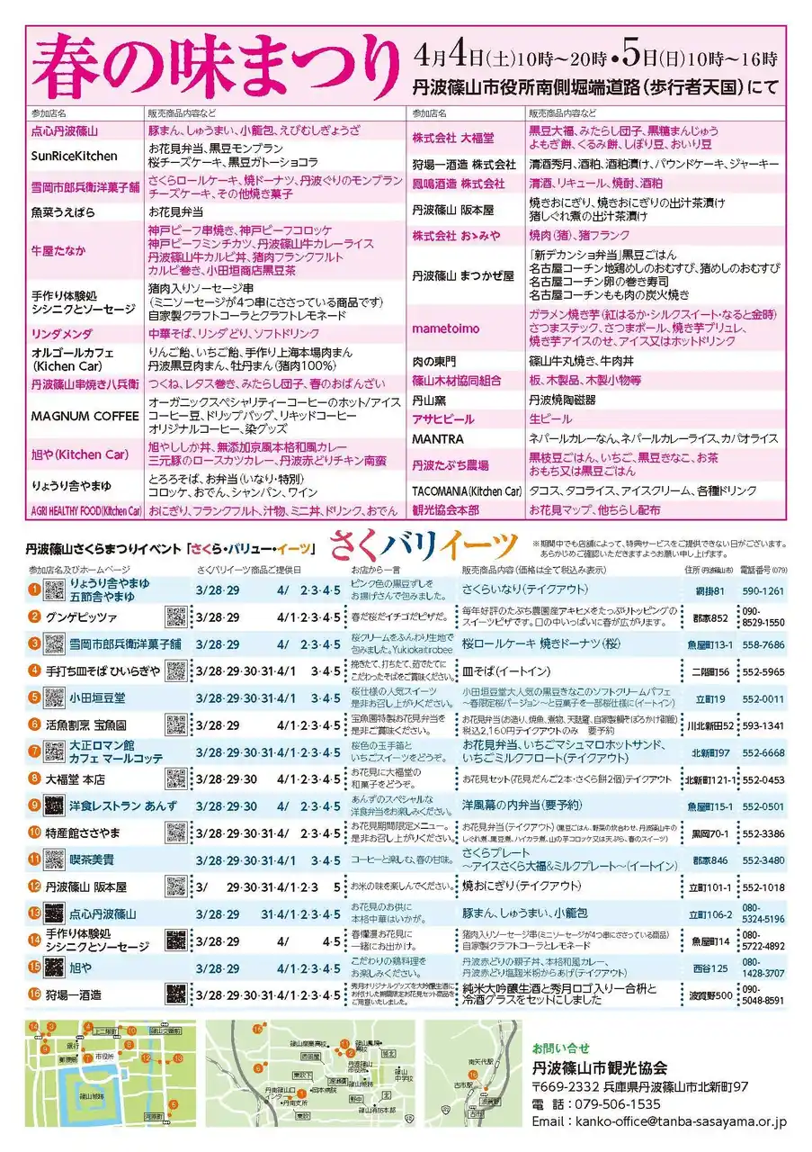 それに伴い、「丹波篠山さくらまつり」と銘打って様々なイベントが開催されます。 |