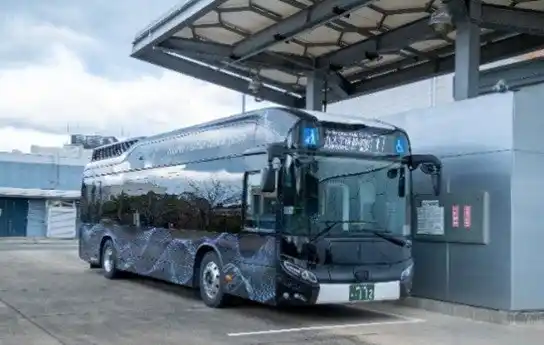 伊都キャンパス周辺で運行する大型水素燃料電池バス |