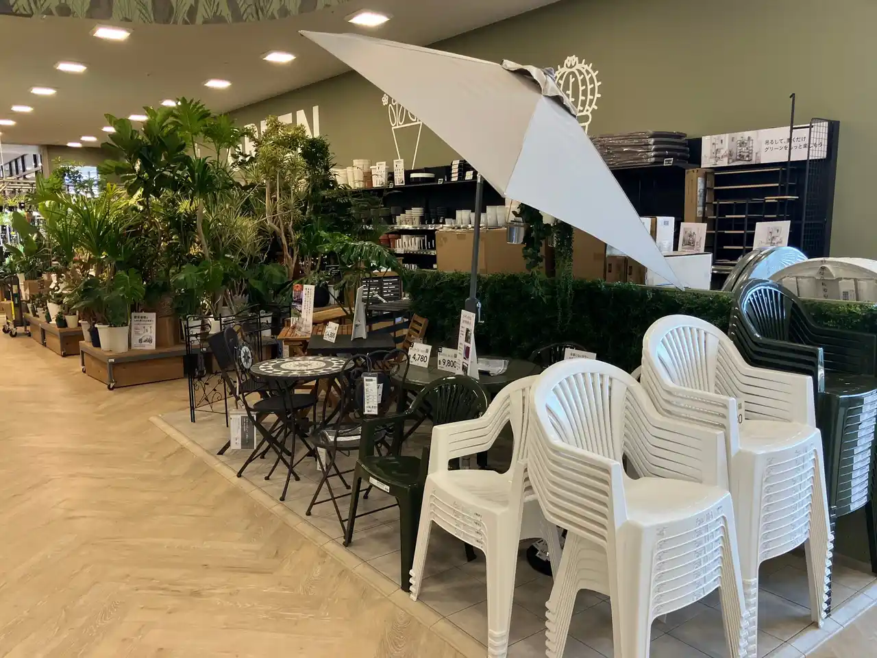 さらに、お庭づくりに役立つ花きや植物、ガーデニング用品も豊富に取りそろえ、グリーンのあるくらしを充実させるヒントが見つかる売り場を展開します。また、鉄鋼のまちを支えるプロの職人の方々のサポートできるよう、建築工具なども取りそろえています。 |