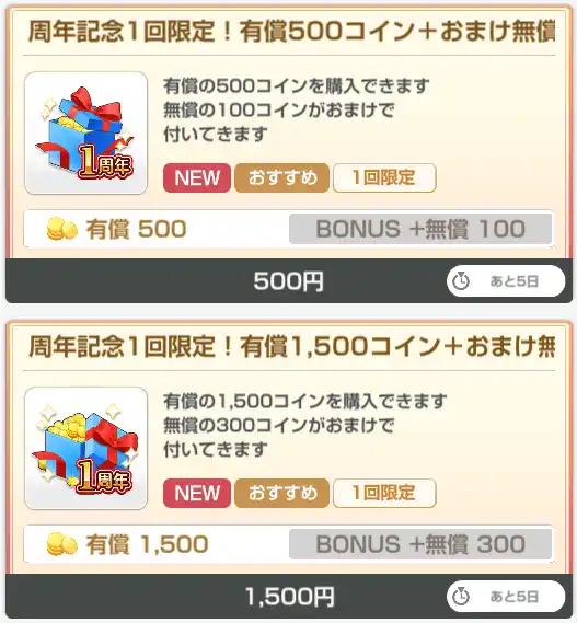 1周年を記念し、おまけのコインを増量したアイテムです! |