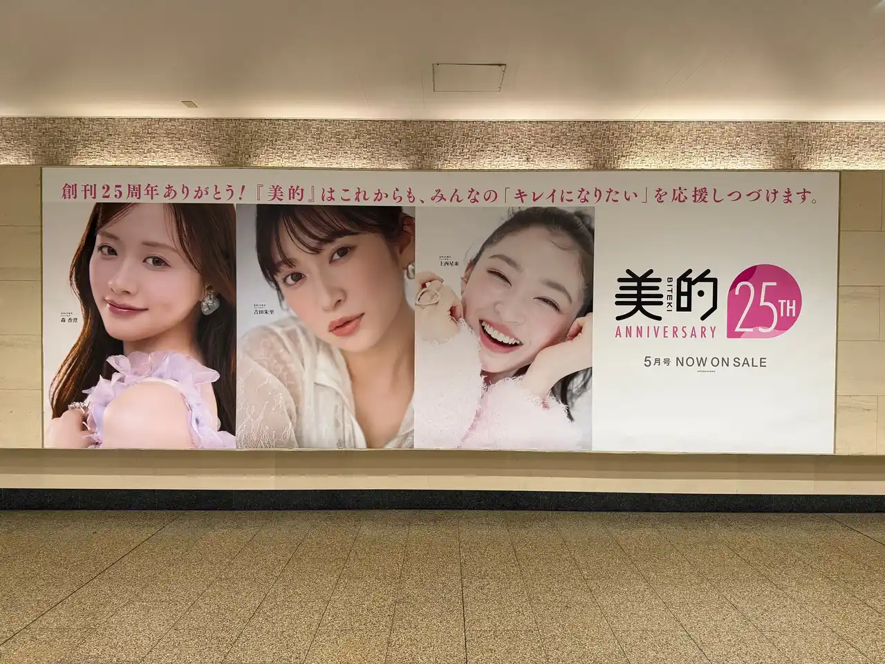 | 創刊25周年アンバサダーの吉田朱里さん・森 香澄さん・上西星来さん、『美的』とゆかりのある美容17ブランドのポスターがアニバーサリーイヤーを彩ります |