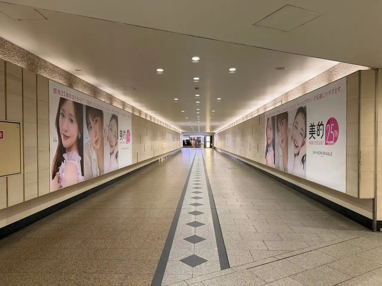 | また、阪急大阪梅田駅(大阪市北区)においても、本日より大型ポスター広告を掲出しています(~3月29日まで)。掲出場所は阪急大阪梅田駅と阪急百貨店(うめだ本店)を結ぶ通路「D-St.(ディーストリート)」。創刊25周年アンバサダー3名の華やかなビジュアルを4面展開でお届けします。 | |||