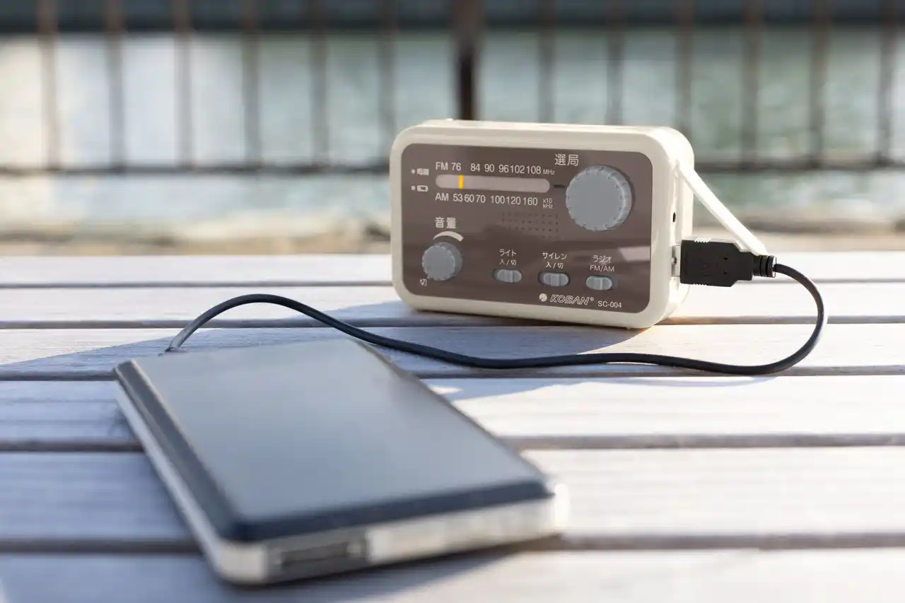 ■電源:手回し充電/ACアダプター(別売り)/単3形乾電池×2本(別売り)/モバイルバッテリー(別売り) |