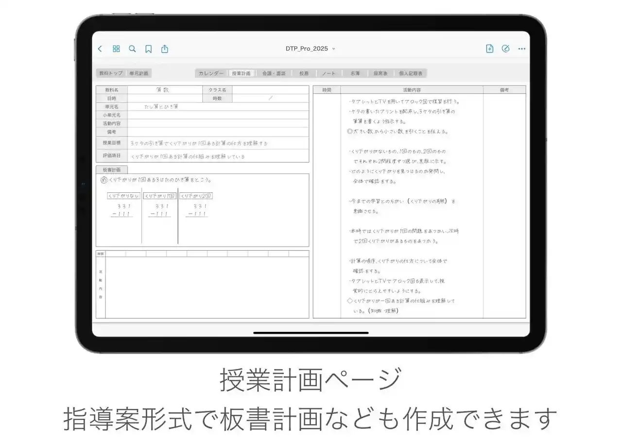 さらにPro版では、スケジュール管理のほか、授業計画や名簿、座席表、児童・生徒個人記録表、校務別スケジュール、会議ノートなどが用意されています。 |