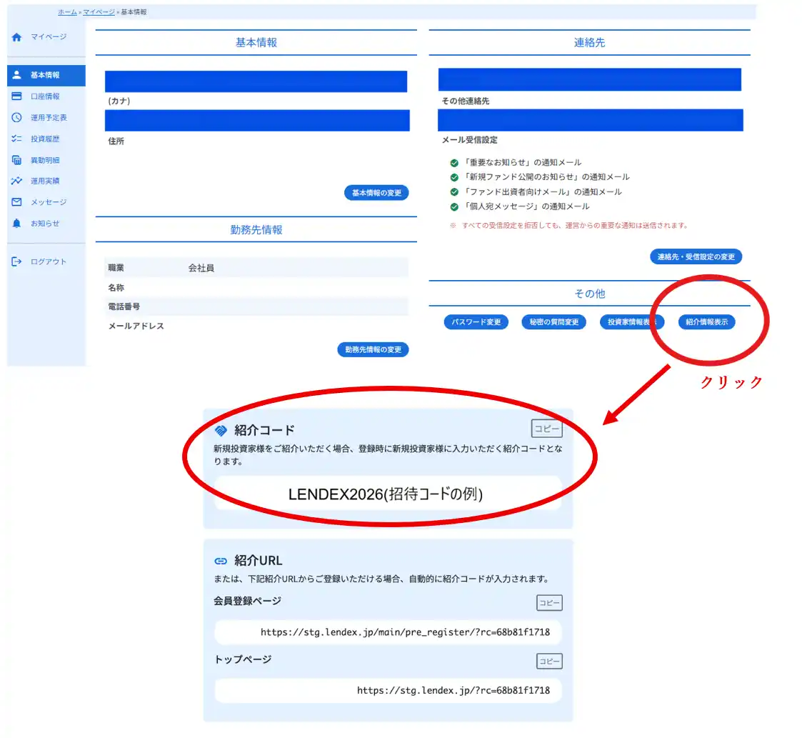 | ※紹介コードは、マイページ内「基本情報」→ その他「紹介情報表示」から確認することができます。 | |||