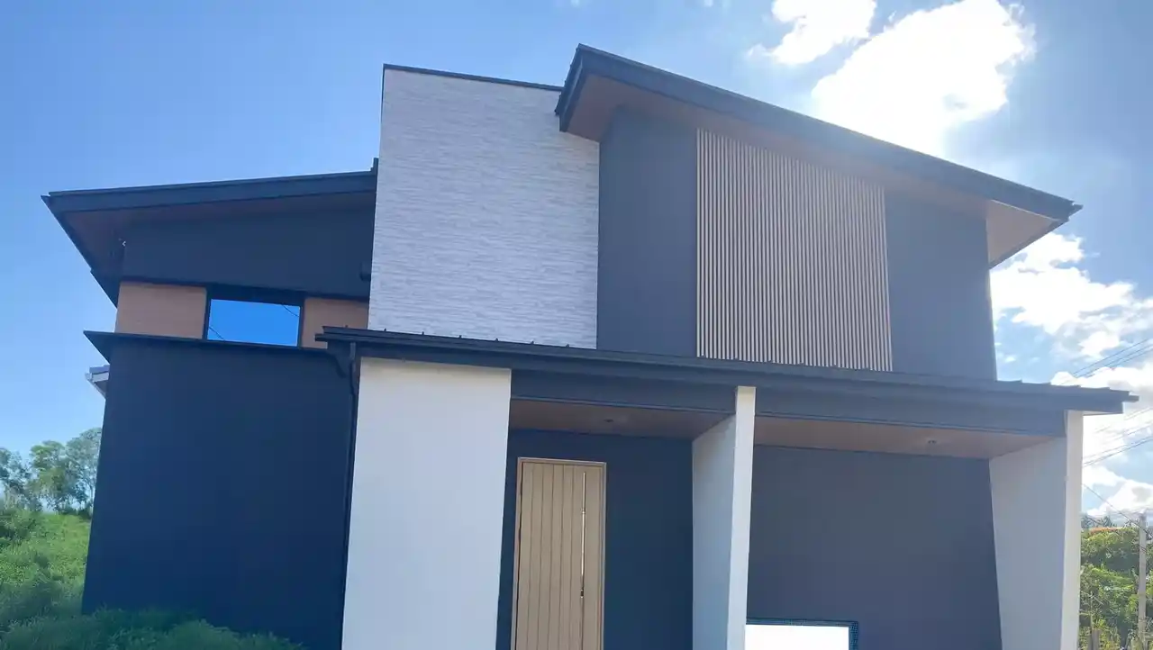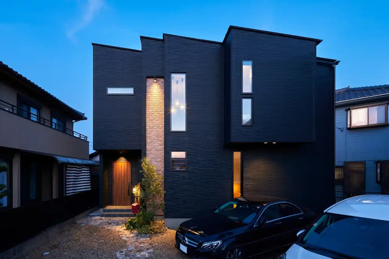 和の趣とモダンが調和する、上質な邸宅。外観はブラック×ホワイトに木目のルーバーを組み合わせることで柔らかさをプラスしています。 |