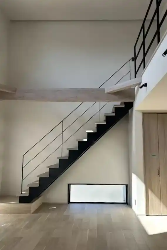 リビングの吹き抜けに設置した高窓は、視線は遮り、光だけを取り込みます。圧迫感を感じさせない、明るく開放的な空間を実現しました。 |