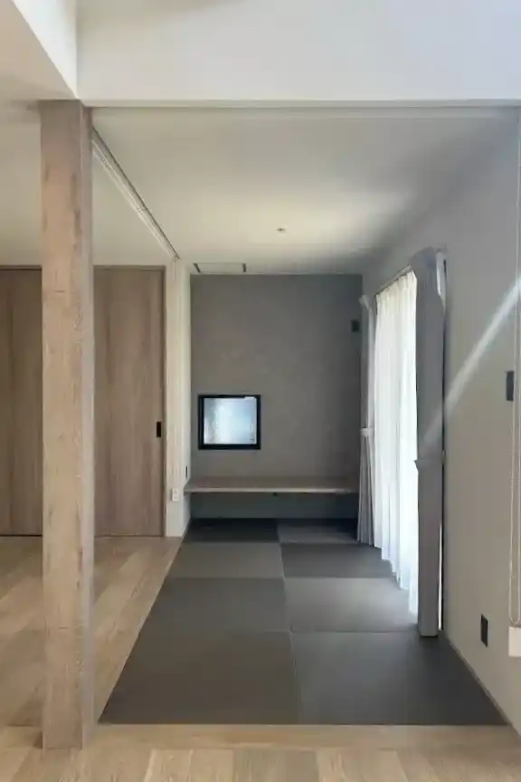 LDKの一角にある畳コーナーにはロールスクリーンを設置。時にはリビングの一部、時には個室。暮らしに合わせて自由な間取りを楽しめます。 |