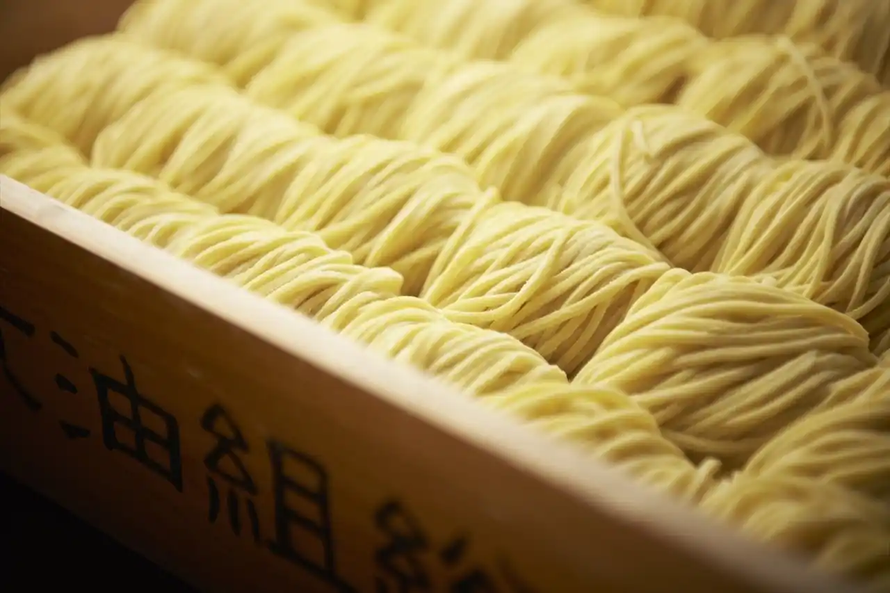 老舗製麺所と共同開発した自家製麺 |