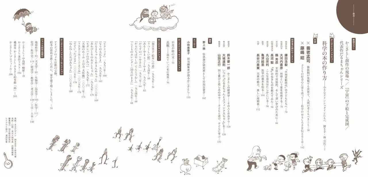 | かこさとしさんの生誕100年を記念し、『かこさとし 科学の絵本とともに』が愛蔵版書籍として刊行されます。本書は、養老孟司氏、藤嶋昭氏との対談をはじめ、地球科学や天文学、生物学、医学など、科学分野の研究者による多数の寄稿を通じて、かこ作品に込められた思いや魅力にフォーカスします。 | ||||||||||||||||||||