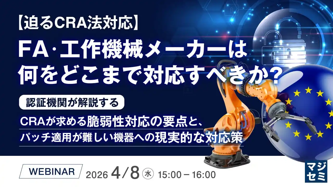 | マジセミ株式会社は「【迫るCRA法対応】 FA・工作機械メーカーは何をどこまで対応すべきか?」というテーマのウェビナーを開催します。 |