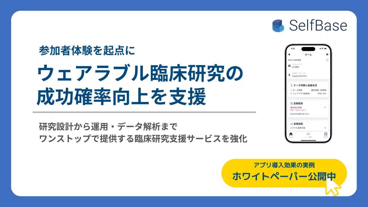 株式会社テックドクター(本社:東京都中央区、代表取締役:湊 和修、以下 テックドクター)は、ウェアラブルデータを活用した臨床研究支援サービス「SelfBase(セルフベース)」に新たな機能を追加しました。 |