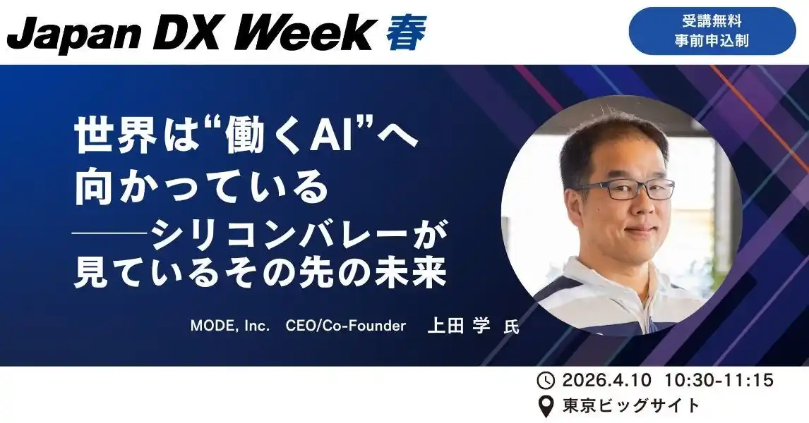 現場データの活用を支援するシリコンバレー発スタートアップMODE, Inc.(本社:米国カリフォルニア州、日本支店:東京都千代田区、CEO:上田 学、以下、MODE)は、2026年4月8日(水)~10日(金)に東京ビッグサイトで開催される「Japan DX Week 春 2026」内『AI・業務自動化 展[春]』に出展することをお知らせします。 |