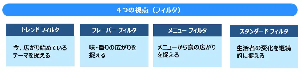 食品市場に現れる小さな変化を見逃さず、次の一手を考えるための“視点”を提供するサービスです。 |