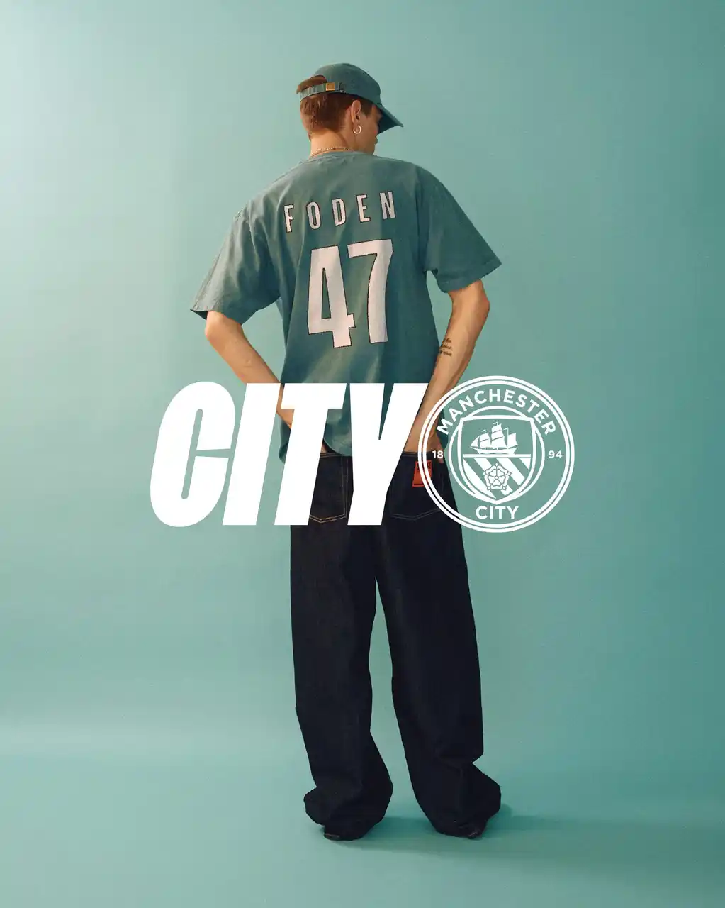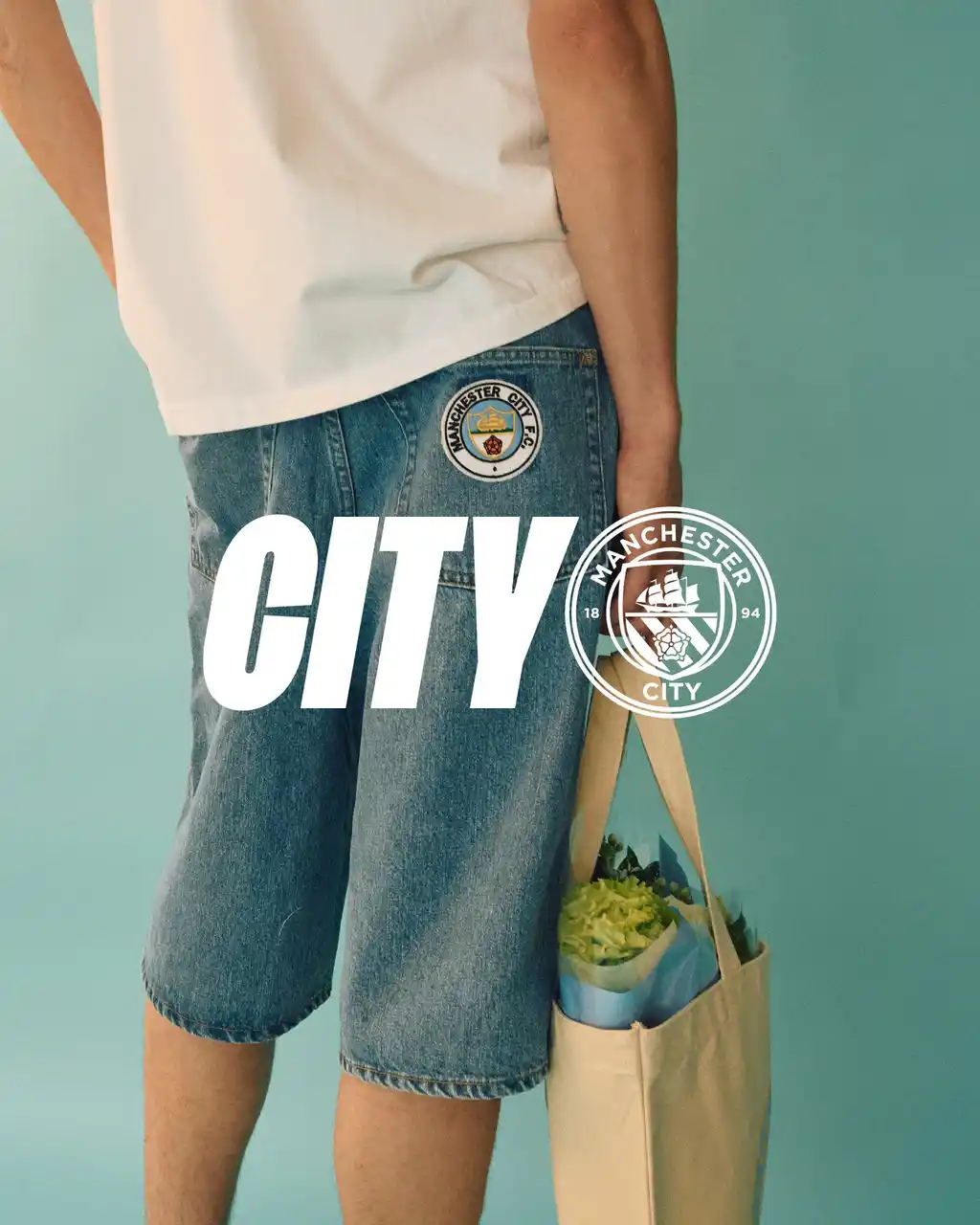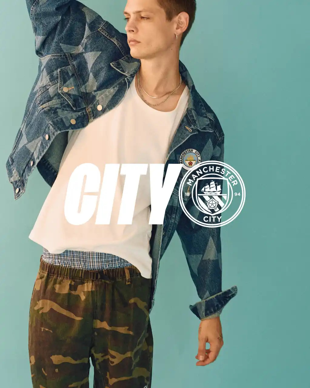 第一弾に続き、マンチェスター・シティFCのチームエンブレムをデザインとして施したデニムアイテムをメインに展開いたします。 |