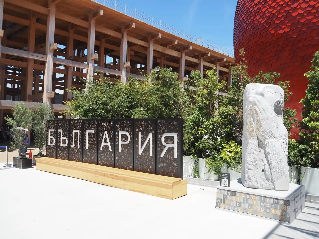 完成した石像「平和のモニュメント」は、Expo2025大阪・関西万博のブルガリア館前に設置されました。石材を通じて日本とブルガリア両国の石文化および加工技術の交流を象徴するとともに、世界中から訪れる来場者に向けて世界平和への強いメッセージを発信しました。 |