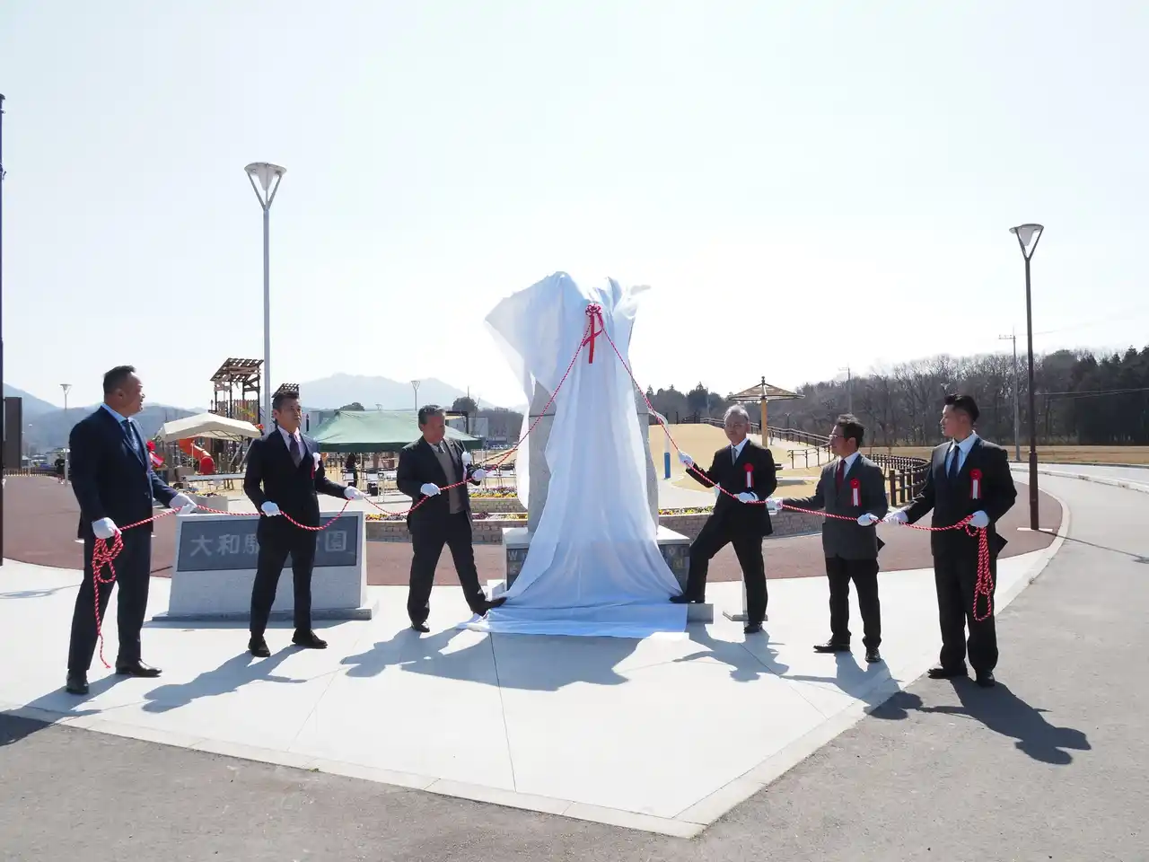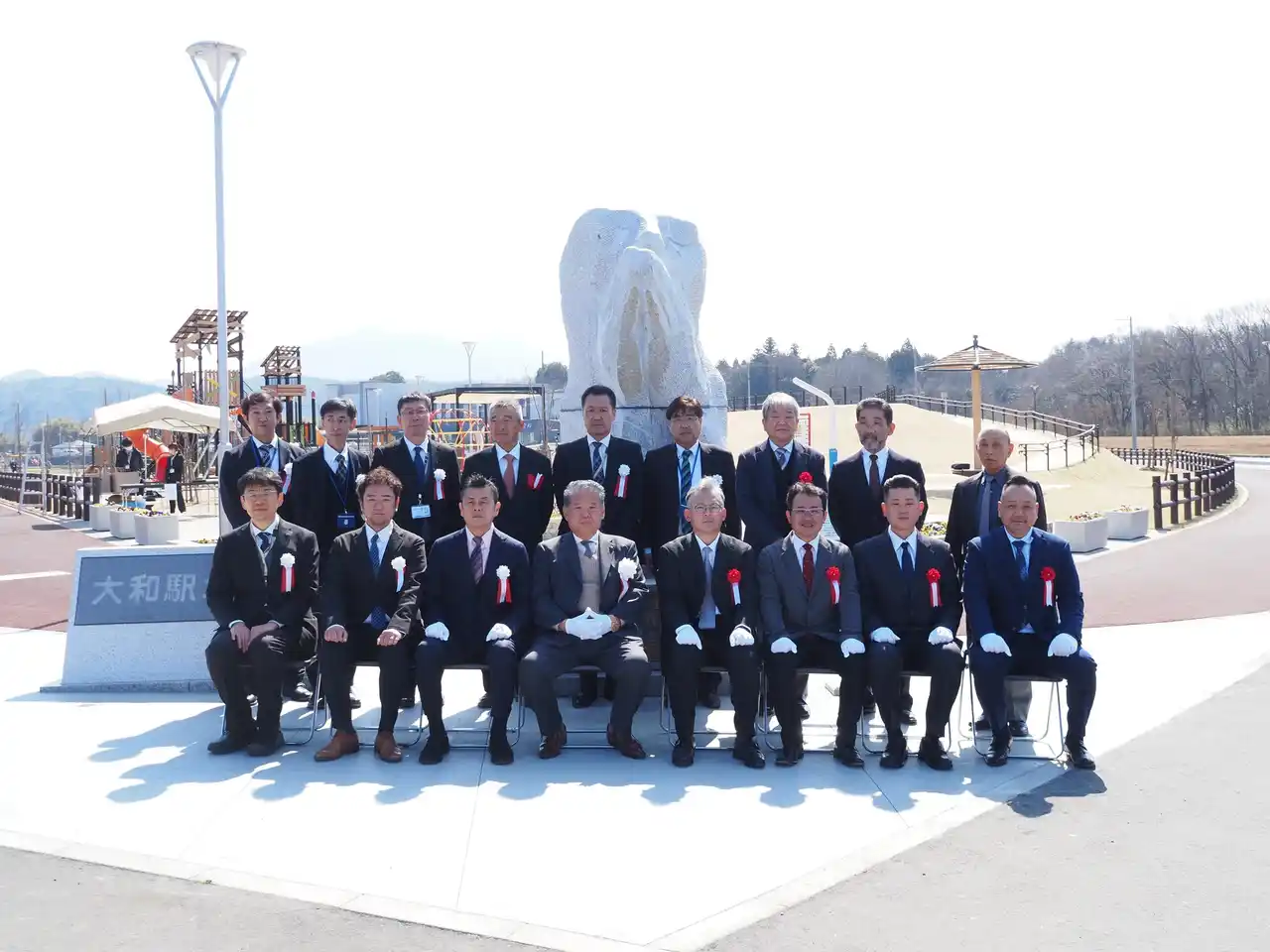 一般社団法人日本石材産業協会(東京都千代田区 会長 森田浩介)は、2024年10月にブルガリアより石彫作家イヴァン・ストヤノフ氏を日本に招聘して制作した「平和のモニュメント」(高さ:2m80cm/総重量:6.8t)を、このたび茨城県桜川市に寄贈しました。2026年3月17日(火)には、モニュメントの設置場所である茨城県桜川市・大和駅北公園にて除幕式も開催されました。 |