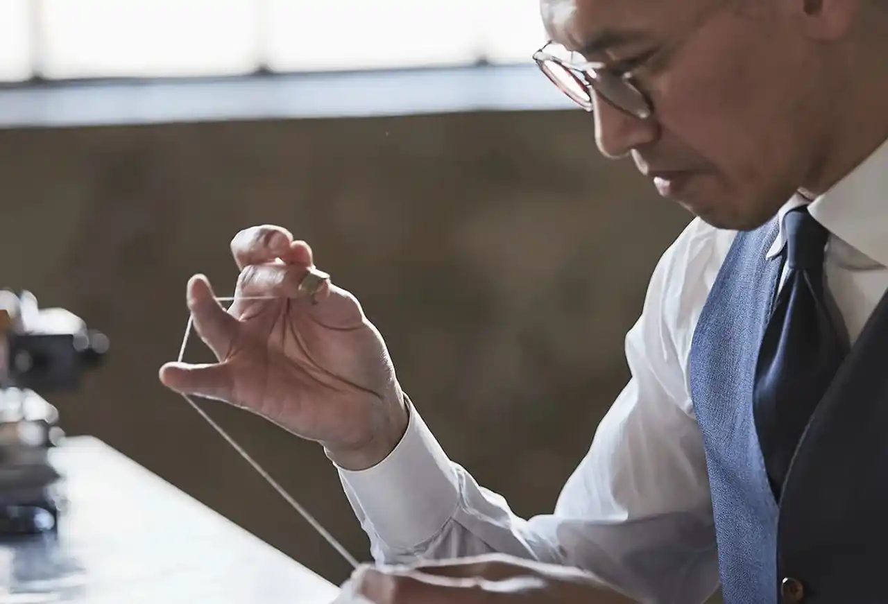 オーダーシャツのトップ・カミチェリアとして知られる山神氏は、SKYRTAがこれまで積み重ねてきたシャツメーカーとしての実績と、国内縫製の現場における職人技術を確認したうえで、今回の協業に臨みました。 |