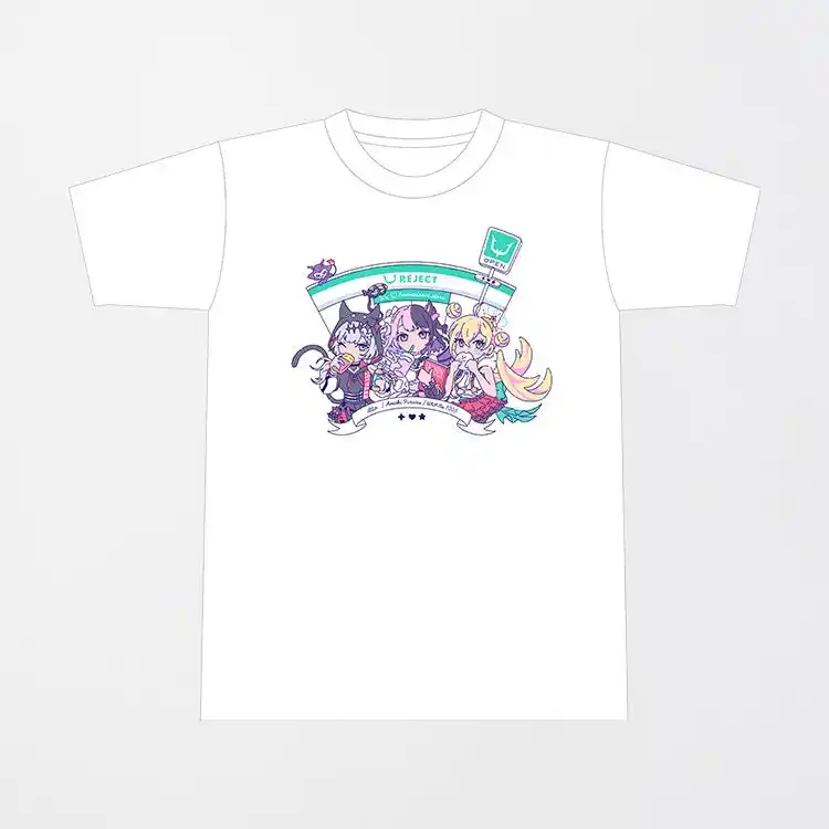 【内容】人気イラストレーター カイツブリさんによる、REJECT 人気Vtuber3名の限定イラストTシャツです。 |