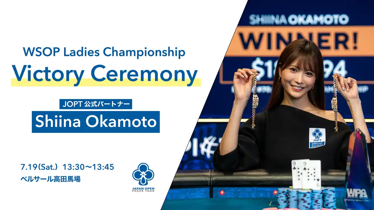 | JOPT 2025 Tokyo #02では、JOPT公式パートナー・岡本詩菜さんが、世界最高峰の舞台「WSOP Ladies Championship」で前人未到の二連覇という偉業を達成したことを記念し、特別トーナメント《Ladies Championship - Shiina Celebration -》を開催いたします! | |||
